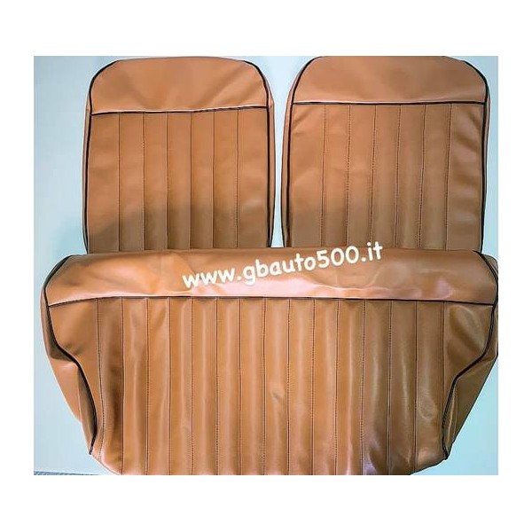 TAPPEZZERIA BIANCHINA DEL 1966 ORIGINALE ASI COLORE OCRA CON CUCITURE TRAPUNTARE NERE BORDATURA NERA ANTERIORI E POSTERIORI (6 PEZZI)