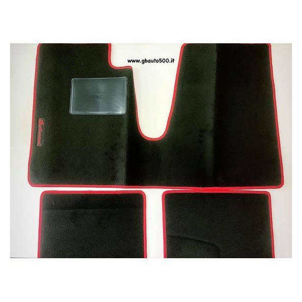 KIT TAPPETI IN MOQUETTE PER LANCIA FULVIA 5 MARCE NERO BORDATURA ROSSA CON SCRITTA RICAMATA FULVIA ROSSO LATO GUIDA