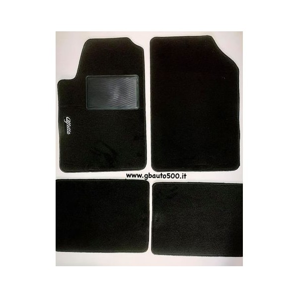 TAPPETI ALFETTA NERI BORDO NERO CON SCRTITA RICAMATA LATO GUIDA ARGENTO