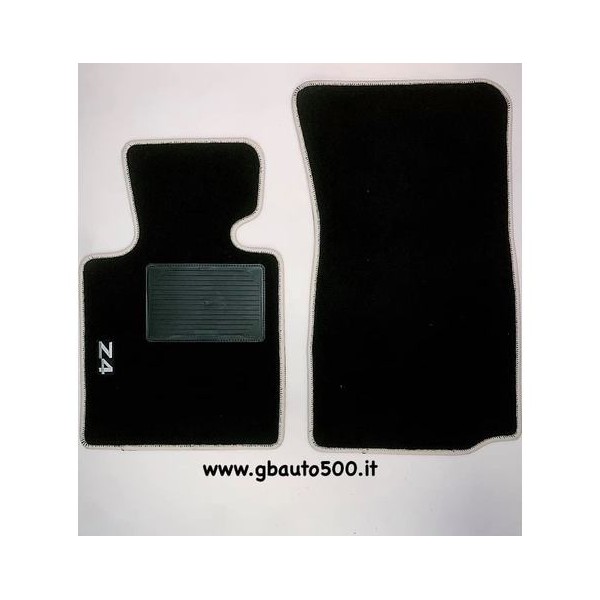 TAPPETI BMW Z4 NERI BORDO CHIARO CON SCRITTA RICAMATA LATERALE, MOQUETTE SOPRA GOMMA SOTTO CON VELCRO ANTISCIVOLO