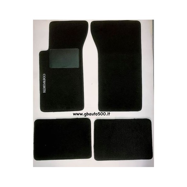 TAPPETINI NERI BORDO NERO FORD COSWORTH CON SCRITTA RICAMATA BIANCA LATO GUIDA