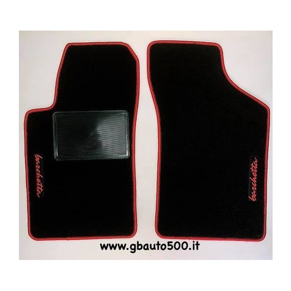 COPPIA TAPPETINI FIAT BARCHETTA NERI BORDO ROSSO CON DOPPIE SCRITTE DESTRA E SINISTRA RICAMATI