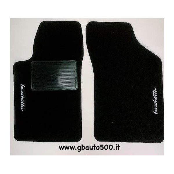 COPPIA TAPPETI FIAT BARCHETTA NERI BORDO NERO CON SCRITTE RICAMATE ARGENTO DESTRA E SINISTRA