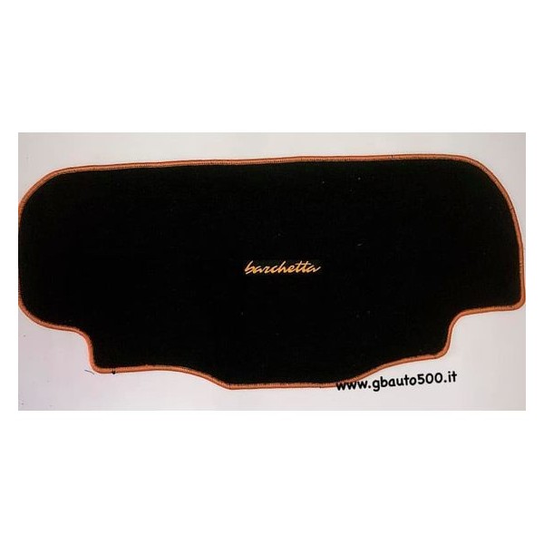 TAPPETO COFANO POSTERIORE FIAT BARCHETTA NERO BORDO ARANCIO CON SCRITTA RICAMATA CENTRALE