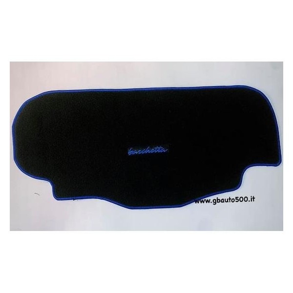 TAPPETO COFANO POSTERIORE FIAT BARCHETTA NERO BORDO BLU CON SCRITTA CENTRALE RICAMATO